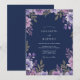 Delicate lavender and lilac blossoms cascade across a deep navy backdrop. Accents of gilded leaves add a touch of sophistication to this ethereal floral arrangement. The design evokes a romantic and refined atmosphere for your special day.