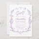 This girl baby shower invitation features a lavender floral frame adorned with butterflies and ribbons.