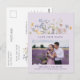 This elegant lavender photo save the date postcard features delicate wildflower blooms in soft pastel tones paired with a beautiful full-color photo layout. The muted purple background and airy meadow florals create a romantic botanical frame, while the minimalist design keeps the focus on your special image.