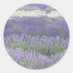 Sticker with beautiful photo of a field of lavender flowers in various shades of purple and white