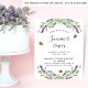 A white background decorated with lavender flowers, eucalyptus greenery and bees. Personalise and your name and details.