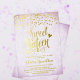 Make your daughter's Sweet Sixteen party even sweeter with our Lavender Sweet 16 Gold Confetti Foil Invitation. This chic design features a top border of confetti dots, the words "Sweet Sixteen", a little heart and your personalised text accented in pressed gold foil on a textured lavender background. So pretty.