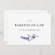 To my Parents in Law on my wedding day card. A simple and elegant card to write a personal and heartfelt message for your parents in law on your wedding day, with a classic and elegant lavender watercolor design, perfect for a floral spring country wedding. You can add a message on the back, or leave it blank if you prefer to handwrite your message later.
