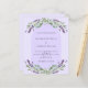 A violet background decorated with purple lavender flowers, eucalyptus greenery and an arch frame. Personalise and your names and details.