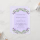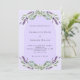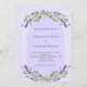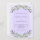 A violet background decorated with purple lavender flowers, eucalyptus greenery and an arch frame. Personalise and your names and details.