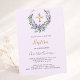 Lavender violet floral greenery girl cross Baptism Invitation