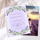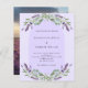 A violet background decorated with purple lavender flowers, eucalyptus greenery and an arch frame. Personalise and your names and details.