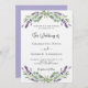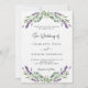 A white background decorated with lavender flowers and eucalyptus greenery. Personalise and your names and details.