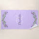 Violet background, decorated with lavender florals and eucalyptus greenery. Personalise and add a name and monogram initials. The name is written with a modern hand lettered style script.