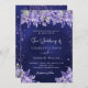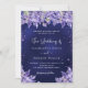 A navy blue background, the blue colour is uneven. Decorated with lavender borders and coloured faux glitter dust. Personalise and add your names and details.