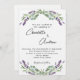 A white background decorated with lavender flowers and eucalyptus greenery. Personalise and your names and details.