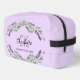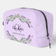 Violet background, black and purple text. Decorated with lavender flowers and eucalyptus greenery.