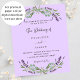 A violet background decorated with lavender flowers and eucalyptus greenery. Personalise and your names and details.