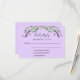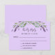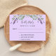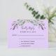 A violet background, black text. Decorated with lavender florals and eucalyptus greenery. Personalise and add a reply by date.