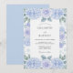 A delicate wash of lavender and soft blue creates an ethereal floral display. Lush hydrangea blooms and subtle rose accents frame the artwork, evoking a sense of serene elegance. This enchanting design whispers of timeless romance.