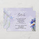 Theme Parties' lavender wedding details enclosure card design features pretty periwinkle / blue daisies and is set on a lavender watercolor swatches. Include your accommodations information and reception details here. #WeddingDetails #RusticWedding #PurpleDaisies
