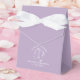 These wedding favour boxes features a classy monogrammed encircled by lavender line art in white over a light purple background. Use the template fields to add your personalised information. Order as many as you like from small quantities to bulk orders. To see the matching elegant wedding stationery suite visit www.zazzle.com/dotellabelle