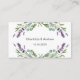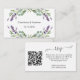 Personalize and add your names, wedding website url for your own QR code and text. White background, black text. Decorated with lavender florals and eucalyptus greenery.