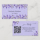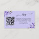 Personalise and add your names, wedding website url for your own QR code and text. Violet background, black text. Decorated with watercolored lavender florals.