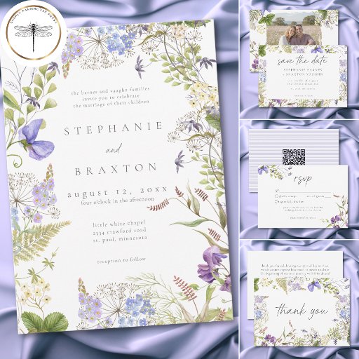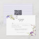 Announce your day with this Lavender Wildflower Garden Romantic Wedding response card with a QR code, featuring delicate watercolor florals on a light lavender purple background. Perfect for a spring or summer garden wedding, this beautiful design offers a whimsical and natural aesthetic. This romantic invitation is fully customisable and sets a lovely, soft tone for your celebration. Created by Simply Farmhouse Press.