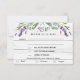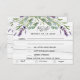 Rustic white wood as background, black text. Decorated with lavender florals and eucalyptus greenery. Personalise and add a reply by date. Add your menu selections/choices.