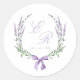 Lavender Wreath & Bow Monogram Wedding Classic Round Sticker