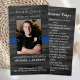 Heroes Live Forever, In Loving Memory. Thin Blue Line Police Memorial Prayer Card. Personalise this police memorial prayer card with your police officer's photo, department, name & dates. Perfect for police departments to honour a fallen officer, and law enforcement memorial keepsakes. Back quote " A Policeman's Prayers". Please reach out if you would like a custom prayer. COPYRIGHT © 2020 Judy Burrows, Black Dog Art - All Rights Reserved. Law Enforcement Funeral Police Memorial Prayer Car