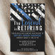 This design features a police force flag with black and white stripes, and a thin blue line stripe as well. "The Legend is Retiring" text sits above all of the party details for the retiring law enforcement officer, sheriff, captain, or chiefs retirement party details.