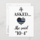 Invite your friends and family to celebrate your special day with these 'He Asked She Said 10-4" thin blue line police themed wedding save the date postcards . These budget wedding invitation postcards need to be mailed as oversized postcards so may incur standard postage fees but they don't need an envelope or a return address label. Customise with your names, and all your wedding info on the back. This law enforcement wedding collection will be a favourite among all police officers, police wife and law enforcement. COPYRIGHT © 2020 Judy Burrows, Black Dog Art - All Rights Reserved. Law Enforcement Police Wedding Save The Date Postcard