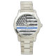 Celebrate and show your appreciation to an outstanding Police Officer with this Thin Blue Line Police Retirement Watch - American flag design in Police Flag colours, distressed design .