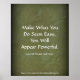 Law Of Wealth Power Make What You Do Seem Easy. You Will Appear Powerful. Poster with a dramatic green stucco background.