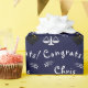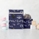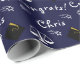 Creative law school graduation gift wrap and grad party decoration featuring navy blue background. To personalise edit text to add graduate's name.