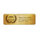 Parchment paper background with dark brown scales of Justice and room for return address or other text. Perfect label for the law school graduation or new lawyer / attorney.