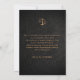 Modern elegant black leather look and faux copper gold law school graduation announcement card template with scale of justice, your custom photo and text.