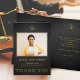 Modern elegant luxury black leather look and gold law school graduation thank you folded card template with your custom photo and text.