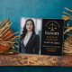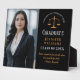 A custom law school graduation plaque in chic black and gold for a lawyer graduating college or university for the class of 2025. Customise with your student photo and school name for a great personalised graduate gift. Keep the inspirational quote about justice by Eleanor Roosevelt or change to your own motivational quotation.