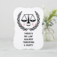 Creative law school grad party invites featuring unique scales of justice design.
