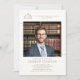 Celebrate your law school grad - or yourself - with this elegant, classic law school graduation photo invitation with a white and gold theme. Replace the scales of justice with the logo of your school or leave it as is. The contemporary typography design is elevated by the gold hues and the minimalist layout. Two gold lines (digital effect!) suggest a modern, minimalist frame for the photo. Customise every line of text. Navy and faux gold.