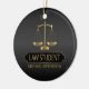 Law Student ornaments. Scale of Justice in Black and Gold A great gift for a law student. 100% Customisable. Design is done in layers so you can be move, resize, delete or change any of the graphics or text to meet your need. There is Ready to Fill in the box(es) or you can Click on the CUSTOMIZE button or CLICK TO CUSTOMIZE FURTHER area to make changes easily. Made with high resolution vector and/or digital graphics for a professional print. NOTE: (THIS IS A PRINT. All zazzle product designs are "prints" unless otherwise stated under "About This Product" area) The design will be printed EXACTLY like you see it on the screen and on the product...so please make sure when you do your changes on the resizing of any of the graphics or text that it fits in the areas correctly and that your spelling and wording is how you like it to be in size, colour and font. If you have any questions about the DESIGN please contact me at homesweethome63@comcast.net. All other questions (shipping, refund, the printing, the product, etc...) please contact Zazzle or the Maker directly. Thank you for the support and stopping by my store - LetsUDesignIt