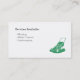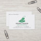 A business card with a green silhouette icon of a lawn mower among the grass. Perfect for those in the business of lawn mowing and maintenance, weed control and landscaping. Personalise with your business information in the text templates provided. Colour palette of white, green and black.