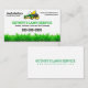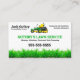 Lawn service business card. with a green and yellow zero turn lawnmower on it.