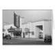 Old 1930s photo of Southern California architecture in Lawrence, Kansas. Movie theatre, bus depot and vehicle with Baker University lettering. Photo taken in 1938 by photographer John Vachon.