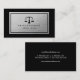 Very elegant Lawyer Attorney Business Card with Faux Silver Foil frame and black justice scale symbol with black background.