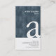 A simple, elegant and professional attorney business card design with the top portion featuring a dark blue grunge texture background. Your monogram letter appears in a large font that flows into an off-white lower portion of the card. Your name and contact details appear on the right side of the card. The simple elegant design creates a highly contrasting image that is powerful and professional. Perfect for graphic, professional, design, elegant, serious themes. Customise it immediately with your own name and details.