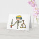 Lawyer design features a scales of justice graphic with judge, blindfold, sword and a pair of scales. For lawyers and fans of the legal system.