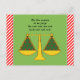 Lawyer or judge Christmas holiday card featuring scales-of-justice Christmas trees and funny line.