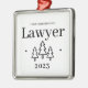 First Christmas as a lawyer luxury style ornament for a new job or graduation from law school. Elegant holiday ornaments in white with black lettering, trees, and stars.