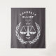 Law school graduation party decoration for lawyer grad event featuring funny scales of justice cartoon. Edit text to add year and the name of your favourite law school graduate, attorney or judge.