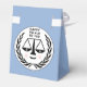 Humourous lawyer party favours gift featuring creative scales of justice personified and funny quote.