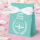 Creative law school graduation or law office party favours featuring scales of justice personified and funny quote.